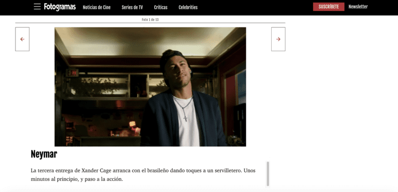 Carmen Sevilla es reconocida en el país y recuerda mucho a la vez que Neymar que también se dedicó a la pantalla grande. Según Fotogramas: “La tercera entrega de Xander Cage arranca con el brasileño dando toques a un servilletero. Unos minutos al principio, y paso a la acción”. Además el astro Carioca tiene su serie de Netflix.