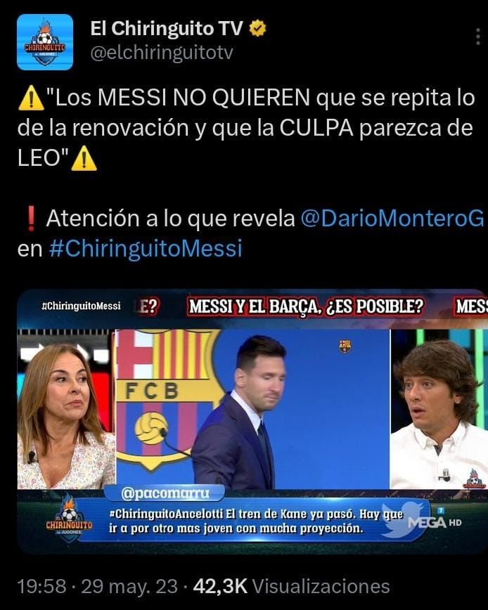De acuerdo a lo informado en el programa ’El Chiringuito de Jugones’, Messi no quiere que se vuelva a repetir lo mismo que pasó hace dos temporadas. Situación que fue de lo más confusa para él y su entorno y en la que se habrían sentido utilizados. Pasó de rebajarse el sueldo y poder renovar con el Barça a que horas más tarde tenga que hacer las maletas para salir del club que tanto ama y por el que lo dio todo.