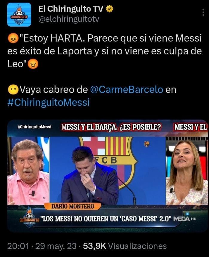 La misma fuente argumenta que toda la responsabilidad de la problemática siempre recae en el jugador y que si Messi firma con el Barça sería mérito de Joan Laporta pero si no lo hace es culpa del jugador. Y se olvidan que la situación económica del club es mala, a pesar de tener un poco más de soltura con respecto a otros años. Y la secretaría técnica todavía está esperando el visto bueno de la Liga para con el plan de viabilidad.