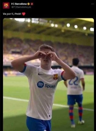 Ya sabemos que Gavi es un efusivo a la hora de jugar y también de festejar, por lo que luego de gritar el gol a todo pulmón y besarse el escudo del Barça que lleva en el pecho, también hizo el característico festejo de Pedri, quien se lleva las dos manos a los ojos como si estuviese simulando unos binoculares. Un claro gesto para animar a su amigo en este momento en el que se ha vuelto a lesionar.