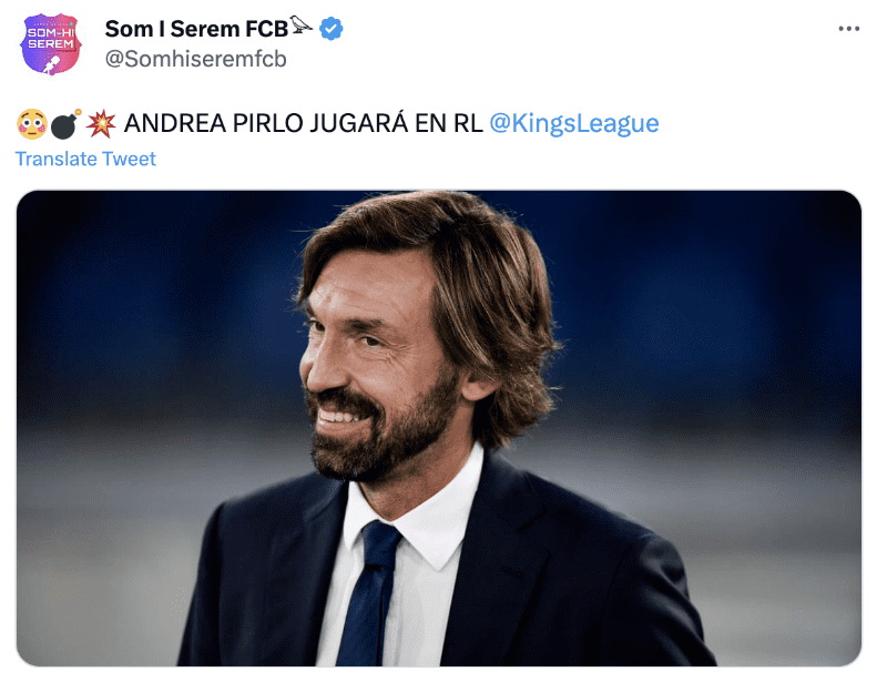 Andrea Pirlo fue oficializado para jugar en la siguiente fecha de la Kings League, donde se cobra por partido 75 euros, de acuerdo a información de Bolavip. Gerard Piqué, quien fue el mentalizador de este torneo que cada vez toma más fuerza, decidió que no se pasen los salarios para no inflar a los jugadores como en la élite.