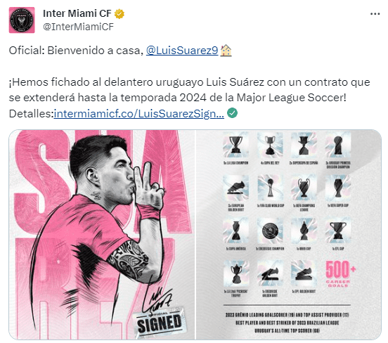 Luis Suárez ha sido presentado en el cuadro norteamericano, proveniente del Gremio de Porto Alegre, y goleador extranjero de la temporada en el Brasileirao, ha estampado su firma en el cuadro que mayor cantidad de fans, sigue sumando en las últimas temporadas. Ahora con Jordi Alba, Sergio Busquets y Lionel Messi se viene un equipo lleno de estrellas y que acompañarán el proyecto de Gerardo Martino en el 2024 buscando la gloria, así como lo ha sido cada paso por los clubes en los que ha estado.