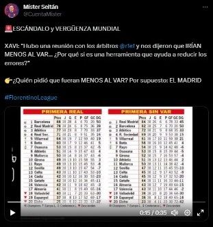 Ya lo dijo Xavi ayer, no le gustó para nada la reunión que se tuvo y la bajada de línea de los colegiados para los clubes. "Hubo una reunión con los árbitros RFEF y nos dijeron que irían menos al VAR... ¿Por qué si es una herramienta que ayuda a reducir los errores?", declaró el entrenador culé con mucha razón. Y el motivo detrás de esto es muy claro, porque el Madrid siempre se ve beneficiado cuando hay jugadas dudosas.