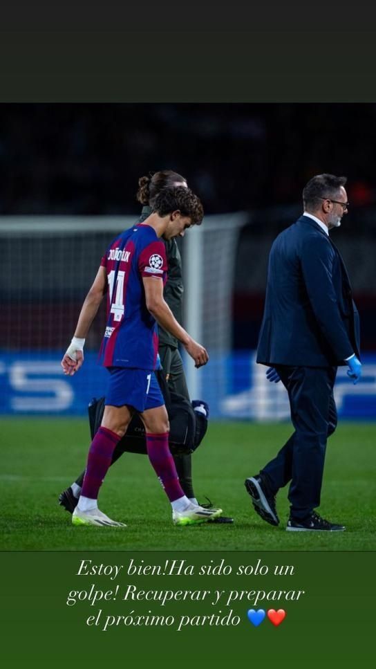 Es uno de lo jugadores claves de la plantilla y de los mejores en LaLiga, por lo que su presencia en el equipo es vital y por ello el gran susto que llevó a todos los aficionados. Afortunadamente, Xavi Hernández en la conferencia de prensa aclaró que lo de Joao no había sido más que un golpe y un posterior calambre, y decidieron sacarlo por precaución. Y el mismo Félix también salió a aclarar y tranquilizar a la afición tanto en la televisión, como en sus redes sociales personales.