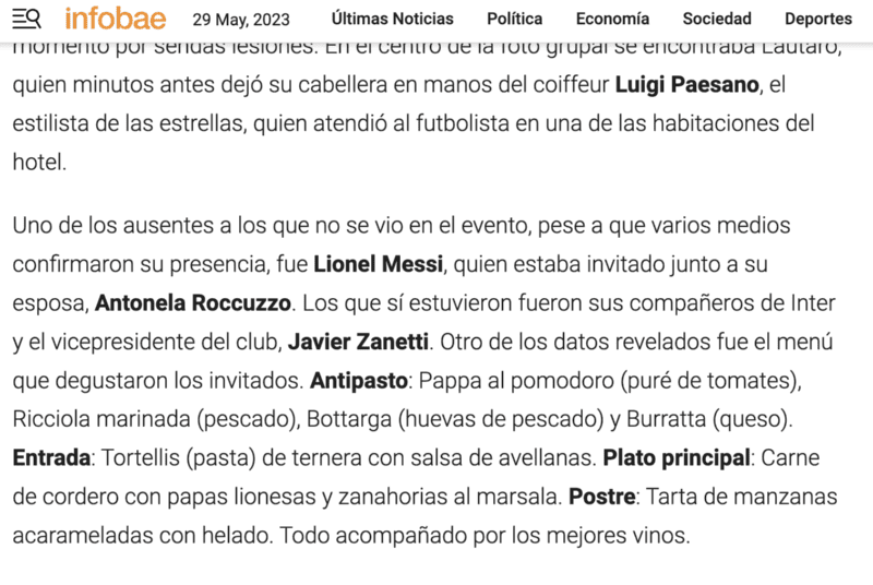 Aunque se informó por varios medios que Lionel Messi iba a ir junto con Antonela Roccuzzo a la boda de Lautaro Martínez con Gandolfo, subieron a las redes sociales una foto con los de la Selección Argentina y no aparece el 10. Estuvieron Lionel Scaloni, Emiliano Dibu Martínez, Enzo Fernández, entre otros.