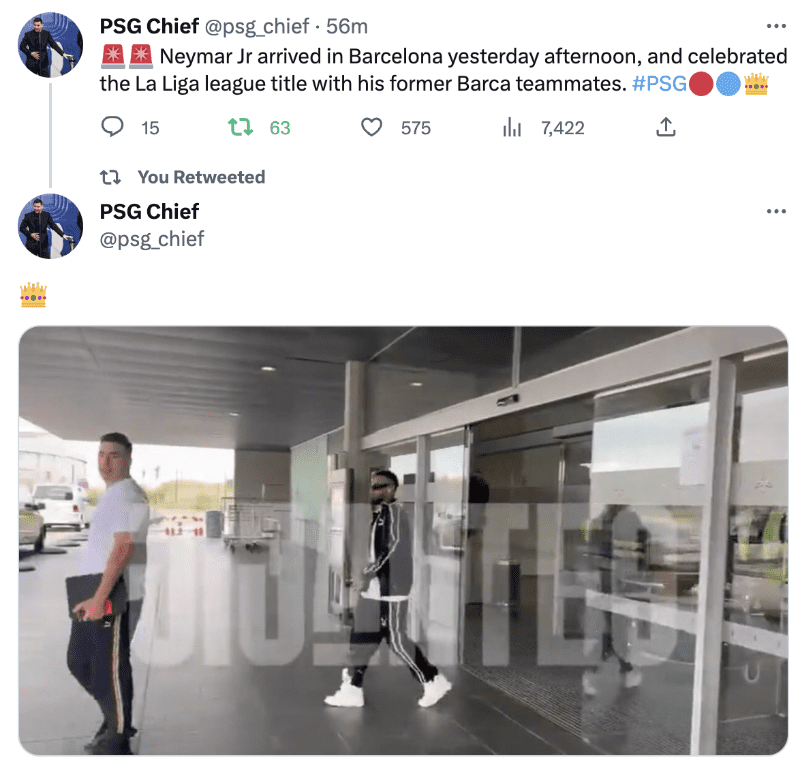 Neymar, fue captado en el aeropuerto, listo para unirse a los festejos del FC Barcelona por la consecución de LaLiga, luego de la goleada por la cuenta de 4 a 2 a Espanyol. El atacante brasileño tiene intenciones de poder volver al equipo Blaugrana luego que los dejó porque el PSG pagó 222 millones de euros.