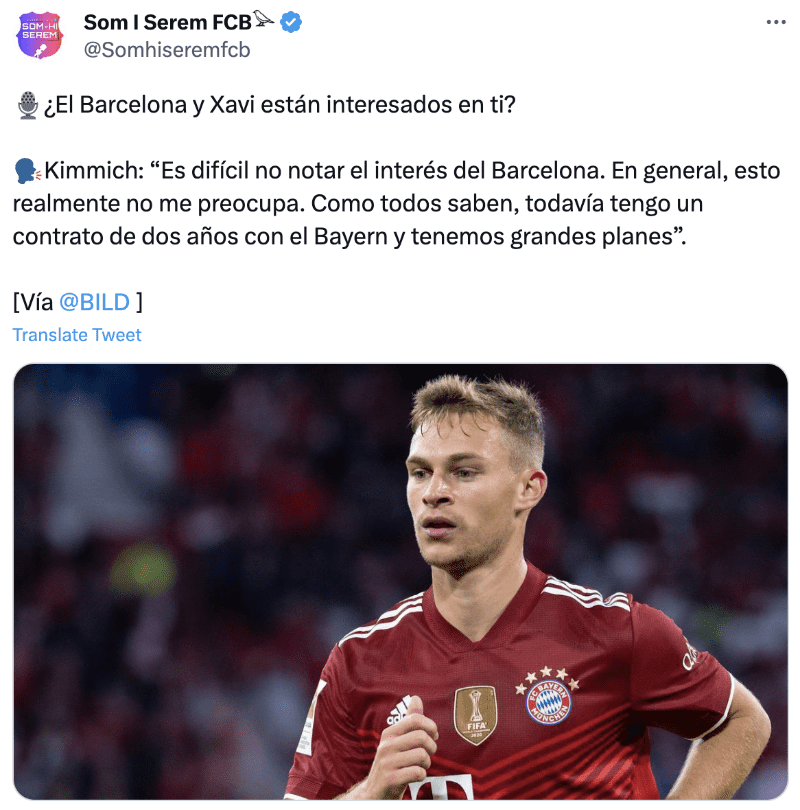 “Es difícil no notar el interés del Barcelona. En general, esto realmente no me preocupa. Como todos saben, todavía tengo un contrato de dos años con el Bayern y tenemos grandes planes”. Aunque se rumoró que Kimmich estaba forzando su salida del Múnich, con estas declaraciones deja en claro que no le quita el sueño ponerse la blaugrana.