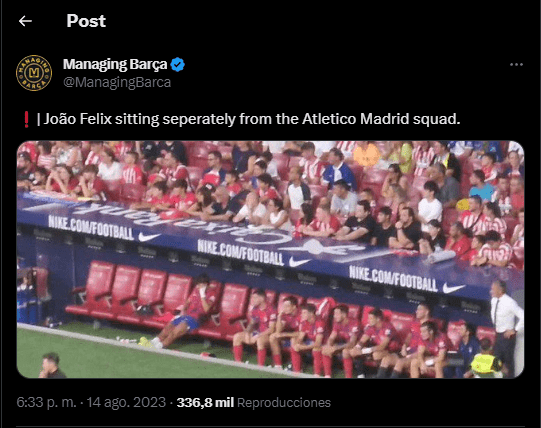 Luego de que Joao Félix admitiera muy libremente su amor incondicional por el FC Barcelona hace algunas semanas, ha estado sufriendo bastante marginación por parte del Atlético Madrid. No solo lo han dejado fuera de algunos de los partidos de la pretemporada, sino que la relación con sus compañeros pareciera haberse desmejorado bastante, y ni hablar con los aficionados.