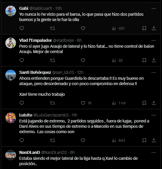A menudo se dice que los fanáticos del Barça son de los más tóxicos que hay, dicho por el mismo Xavi Hernández en conferencia de prensa. Por lo que es inevitable que salga esta clase de gente a criticar tan duramente a un jugador que estuvo parchando una posición que no es la suya. Misma gentuza que pide la destitución de Xavi, cuando nos sacó campeón luego de tres años sin hacerlo y todo por dos partidos adversos en el juego.