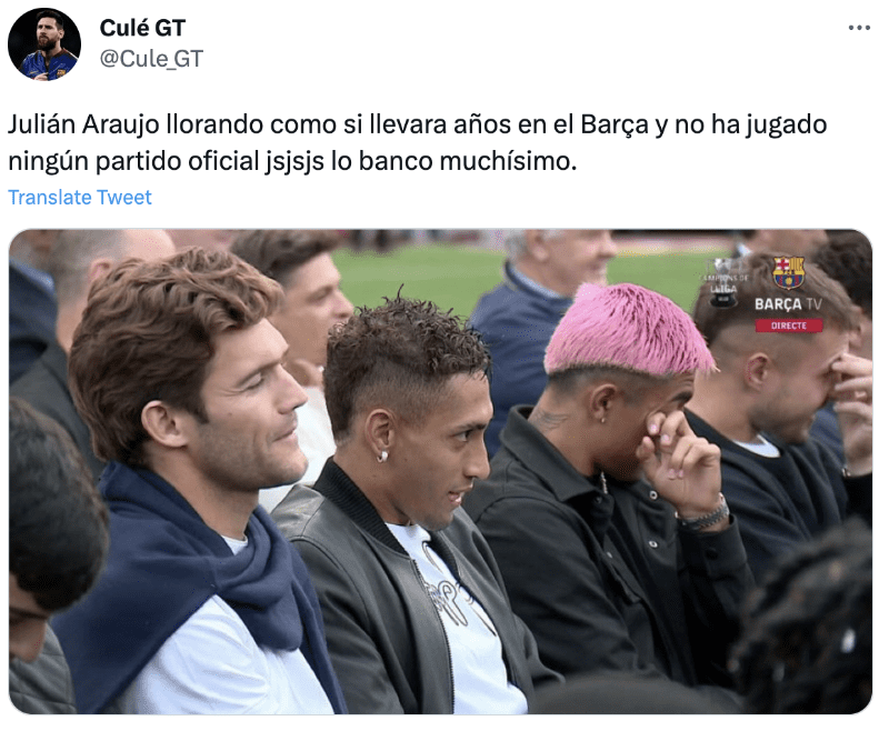 Se trató de Julián Araujo, jugador mexicano que llegó al FC Barcelona y se le ha pegado en la piel la camiseta del equipo. Aunque no ha jugado un solo minuto, el jugador no aguantó y lloró en la despedida de Sergio Busquets donde recibió elogios de todos lados, entre ellos de Pep Guardiola y Lionel Messi.