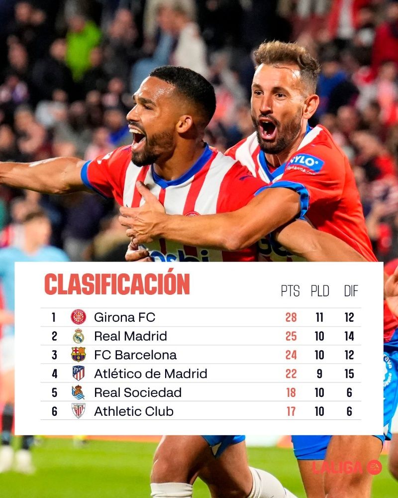 Cabe resaltar en este primer apartado que hasta antes del inicio de la jornada 11 de LaLiga, el Real Madrid partía como líder con 25 puntos. Este producto de su empate reciente ante el Sevilla por marcador de 1 a 1 en el Ramón Sánchez Pizjuán, después de tres victorias al hilo, por su parte el segundo de la tabla era el Girona quien, con la misma cantidad de puntos, pero menor diferencia de gol, se ubicaba en la segunda casilla, ahí tenemos al Barça en la tercera colocación con 24 puntos luego de su victoria ante el Athletic de Bilbao, dos más que el Atlético de Madrid.