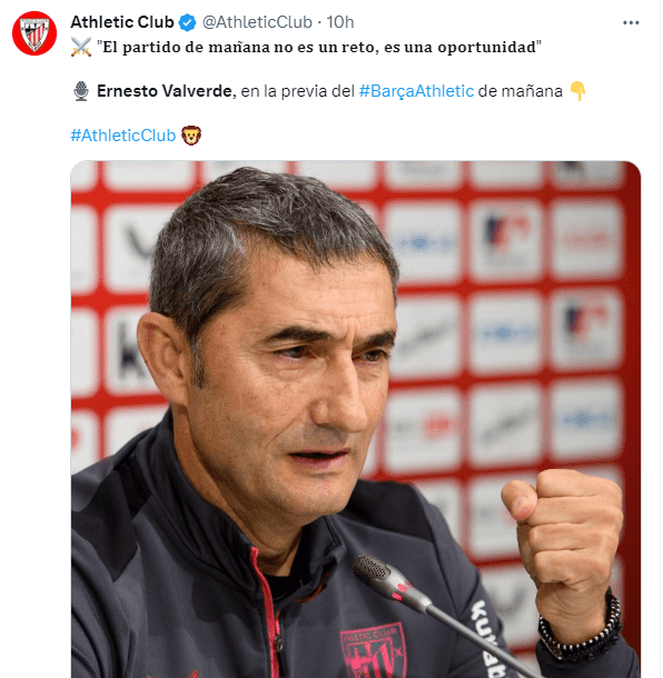 Por ello y en la previa del mismo, un viejo conocido de la casa como lo es Ernesto Valverde se pronunció ante la prensa y todos los fans del Athletic de Bilbao, compartiendo las sensaciones de este duelo, mencionando lo siguiente: "Una oportunidad para poder acabar con la mala racha. Tenemos que intentar explotar esas oportunidades para poder conseguir los tres puntos. Se trata de maximizar nuestras virtudes y de minimizar las suyas", enfocándose en la racha de más de 20 años que tiene el cuadro vasco sin vencer como visitante el Barça.
